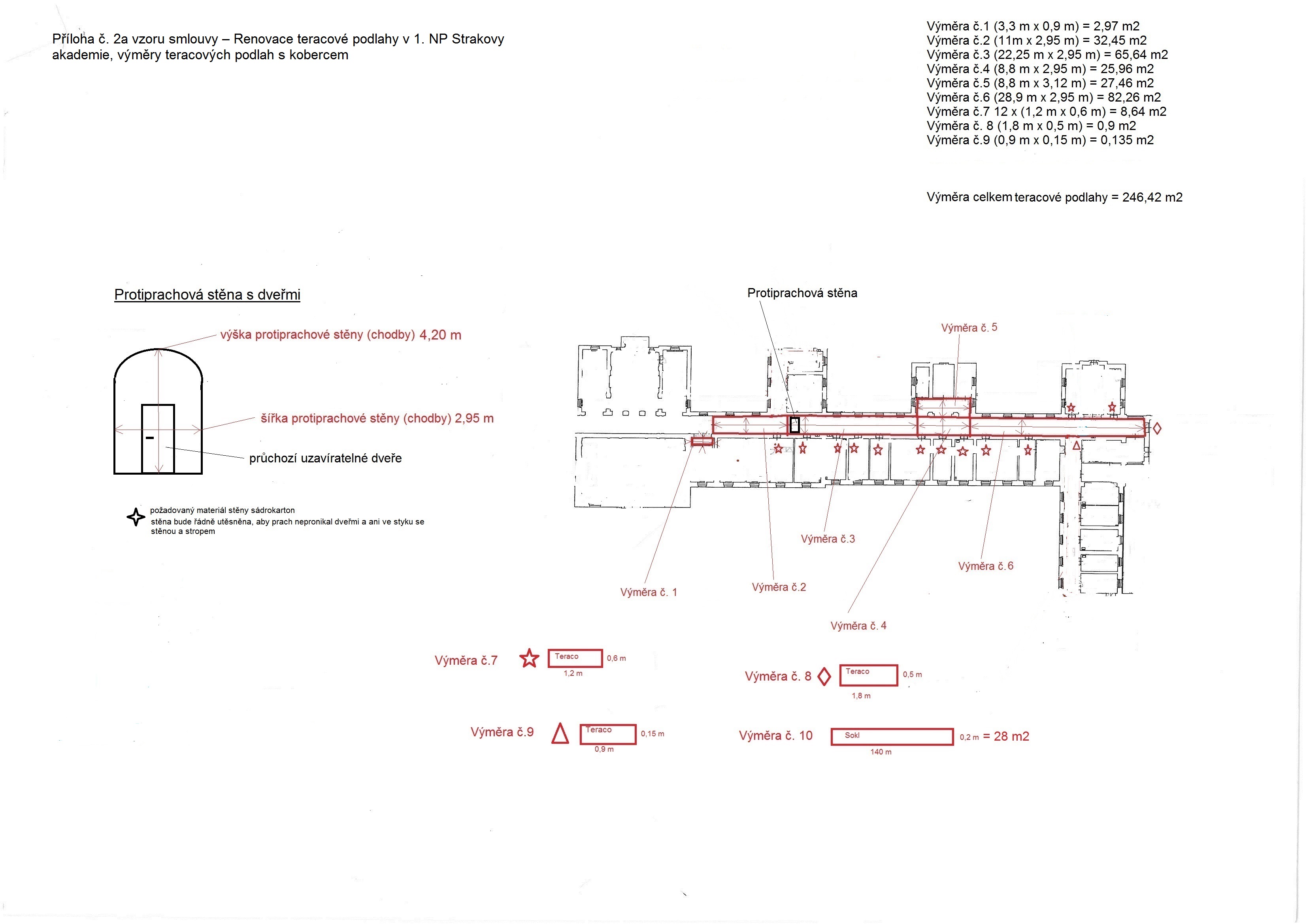 | Název: | Příloha č. 2a vzoru smlouvy – Renovace teracové podlahy v 1. NP Strakovy akademie, výměry teracových podlah s kobercem |